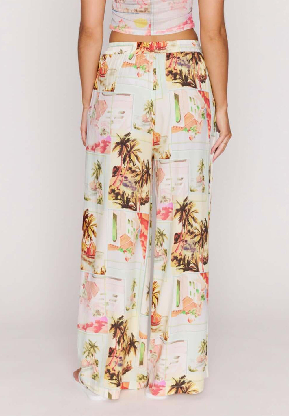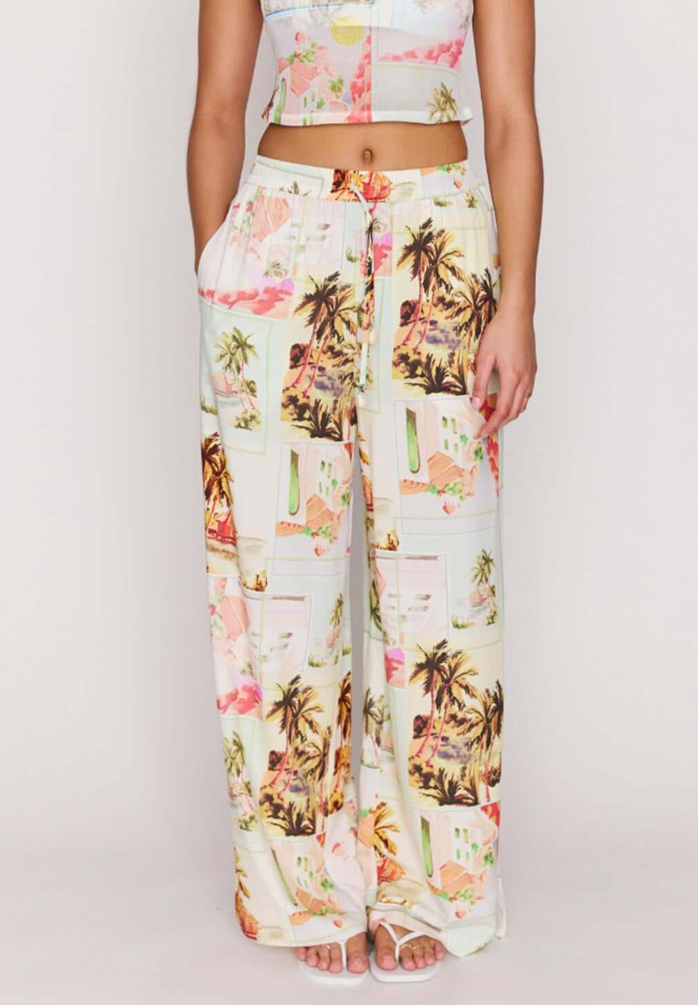 Vintage Postcard Print Drawstring Pants
